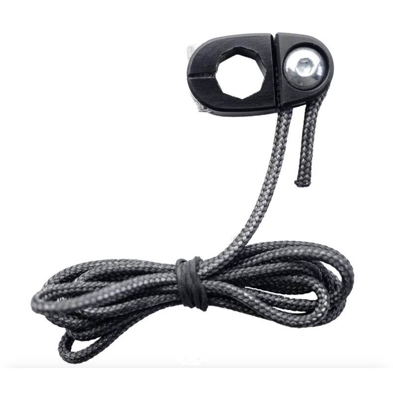 Nouvelle pièce d'armement des repose-flèches Hamskea qui facilite le montage et le réglage. Le bras de levier de la pince à cordon élimine le besoin d'une olive de serrage ou d'autre tendeur de cordon. Ce dernier s'enroule autour du cylindre qui reçoit la vis de blocage de manière à ce qu'il ne s'effiloche pas et n'endommage pas la corde.