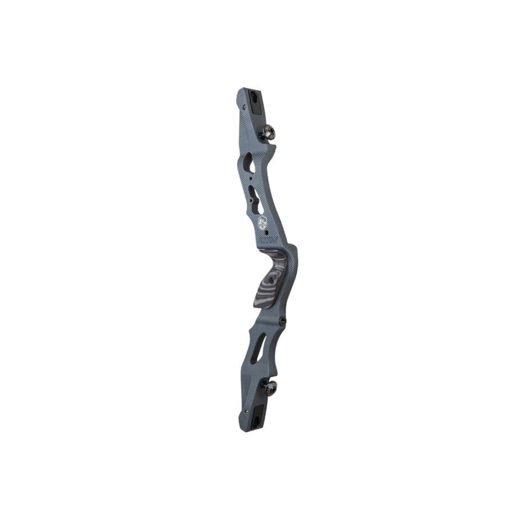 La poignée d'arc Bryon usinée en aluminium CNC au système ILF (International Limb Fitting) permettant d'y monter la plupart des branches du marché.