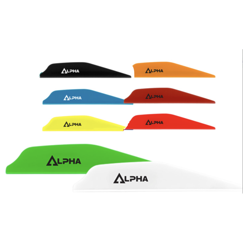 La forme des vanes Alpha est très étudiée et ses dimensions sont de 2,8″ (71,1 mm) de longueur, 0,45″ de hauteur (11,4 mm), le poids d'une vane est de 8,5 grains. ce qui permet un vol rapide et ultra-silencieux sur de plus longues distances.