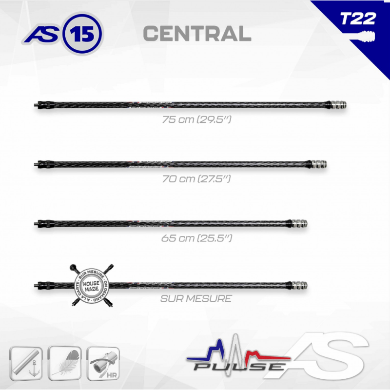 Stabilisateur central pour arc classique en carbone HR au diamètre 15 mm. Robuste et fiable, nous le recommandons pour les "1er équipement"