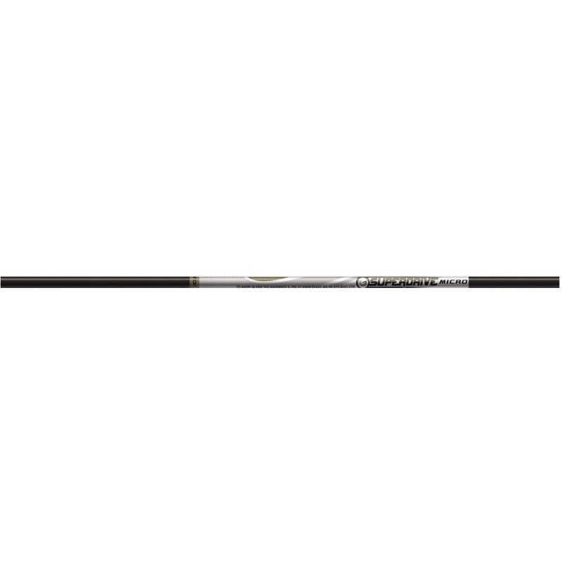 La Superdrive Micro est disponible en 11 rigidités, de 325 à 950, offrant un choix adapté aux meilleurs archers de chaque catégorie, avec une précision de rectitude de 0,002 pouce. La Superdrive est accompagnée d'une gamme complète de pointes de cible à coller, d'inserts de viseur, d'encoches et d'encoches à montage direct. Vendue uniquement par douzaine de tubes. Les composants sont vendus séparément.